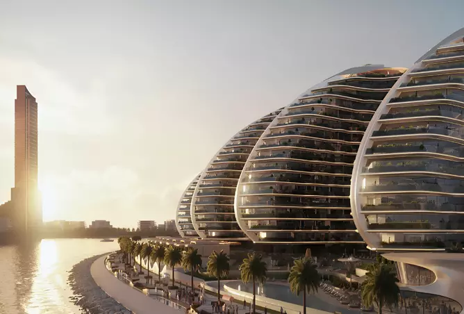 Cala Del Mar features a striking 13-story tower with only ten homes per level, ensuring an intimate atmosphere of solitude and luxury. Each apartment boasts direct beach access, allowing residents to immerse themselves in the azure waves and golden sands of the Arabian Gulf. The architectural design is inspired by the fluidity of water, reminiscent of elegant ships and nautical motifs, setting a new standard for luxury seaside living.